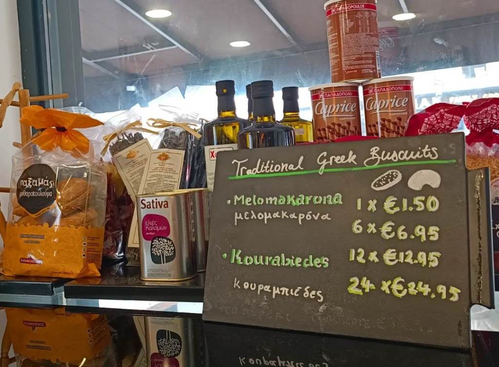 Traditional Greek products and desserts at Cafe Filo.